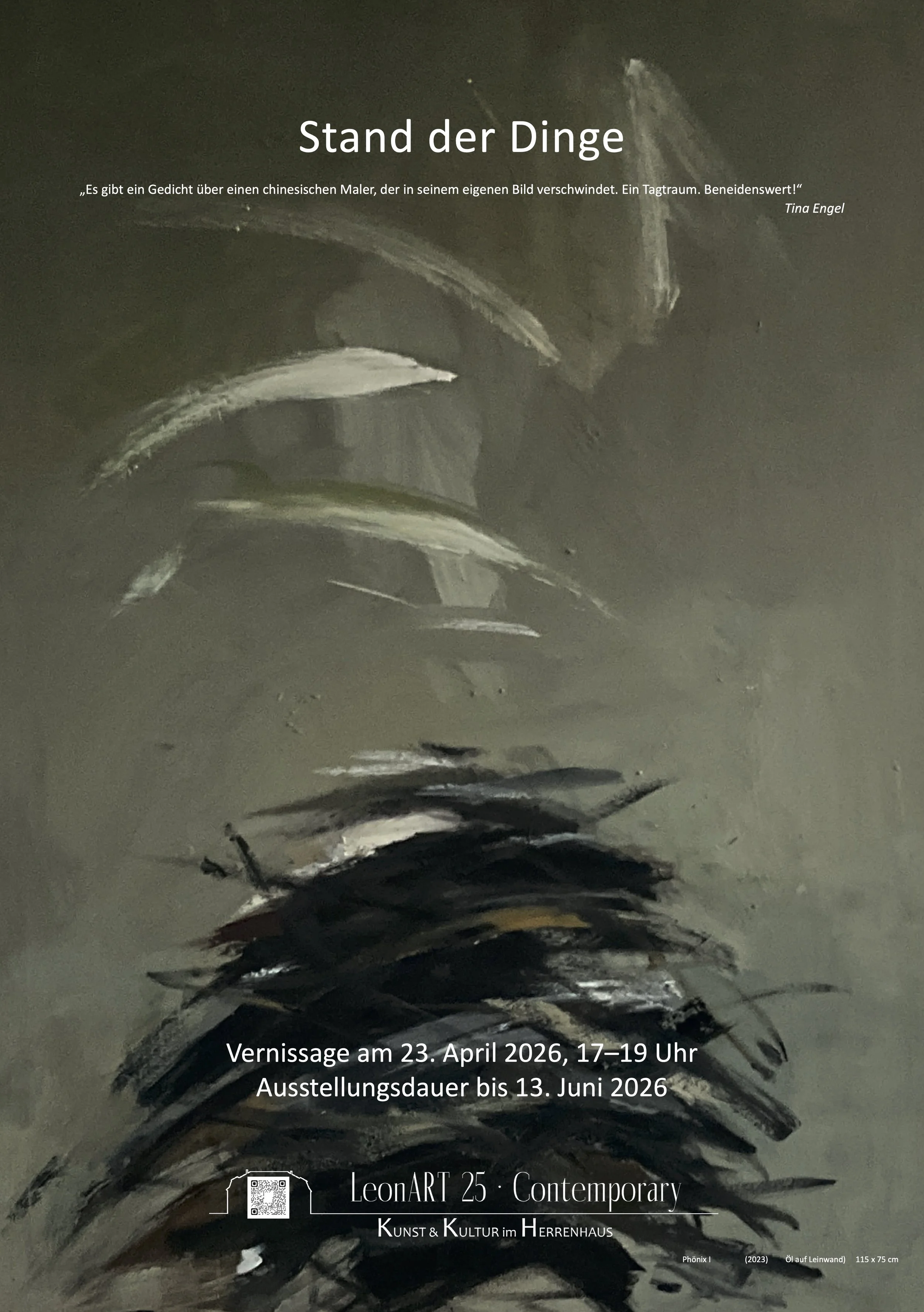 “Stand der Dinge” – Vernissage am 23. April 2026 ab 17 Uhr 9. Apr. Verfasst von Ariane Windhorst Ariane Windhorst